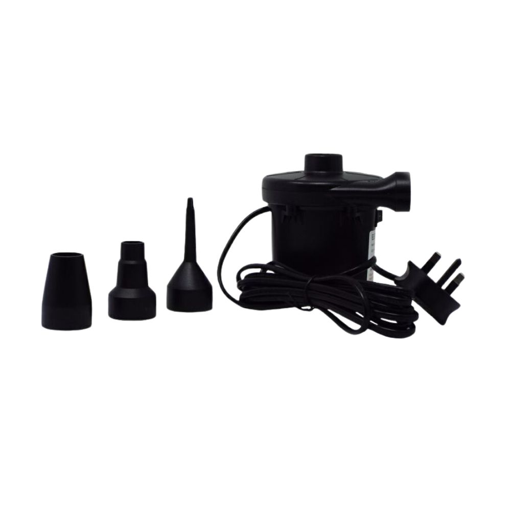 Her får du en super luftpumpe der hurtigt og effektivt fylder karret , og andre oppustelige genstande. Der medfølger forskellige mundstykker alt efter hvilken ventil, der sidder på genstanden.